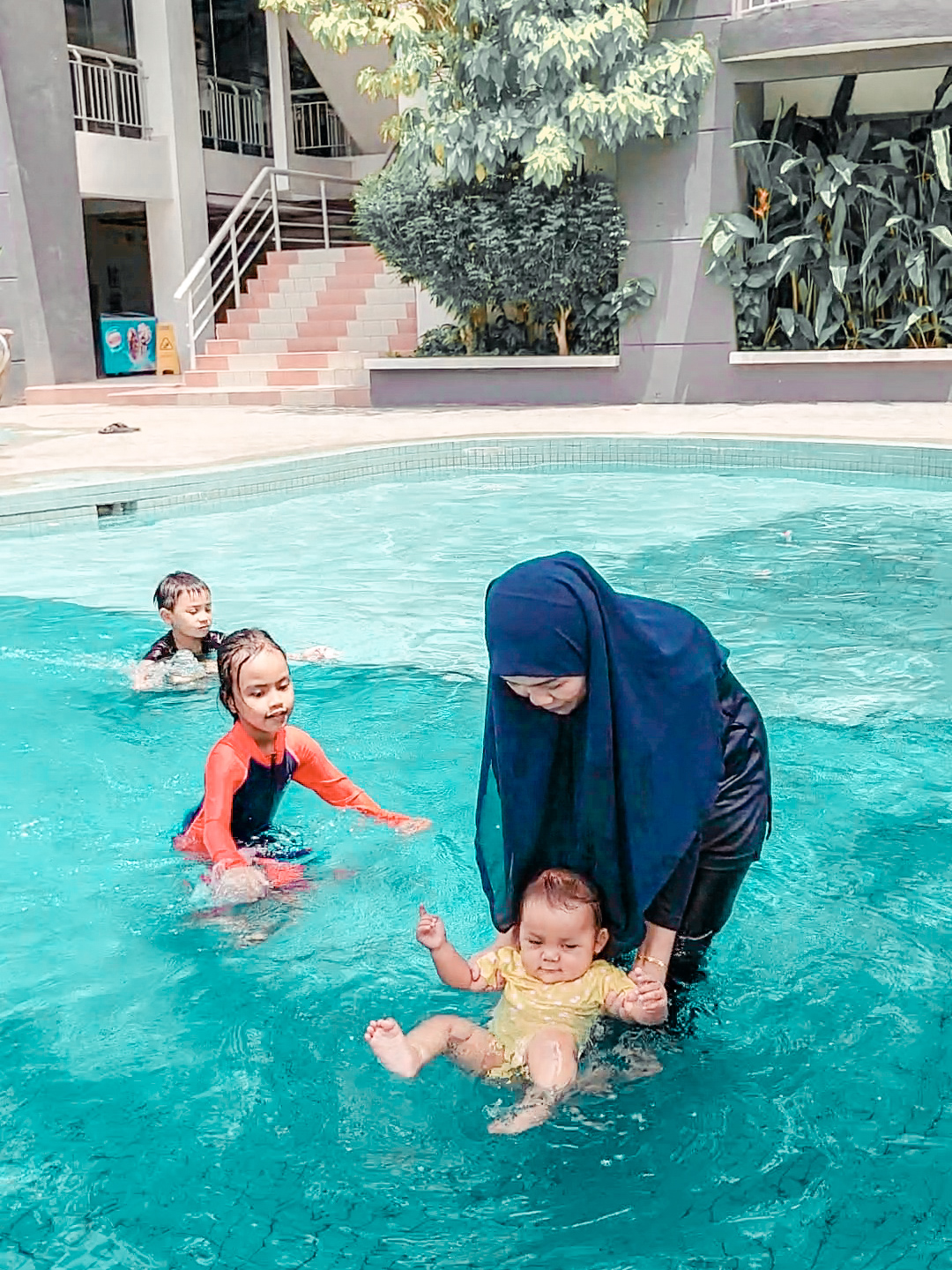 Mandi time ! Dah lama Rayyan tak mandi kolam sejak PKP, adik pulak first time mandi kolam heheh, ada dua kolam untuk kanak-kanak dan juga dewasa, ada gelongsor untuk anak-anak main, memang seronok lah dorang, Umi tumpang rendam-rendam kaki sambil layankan aje dorang bergembira